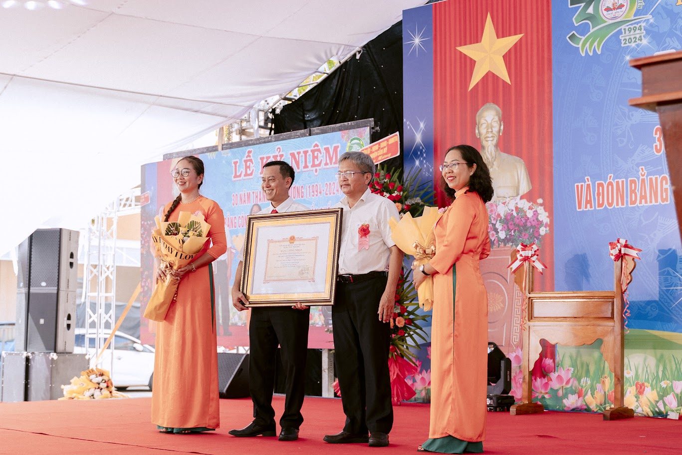 Một trong những nội dung quan trọng của buổi lễ là nhà trường vinh dự đón nhận Bằng công nhận Trường đạt chuẩn Quốc gia mức độ II.