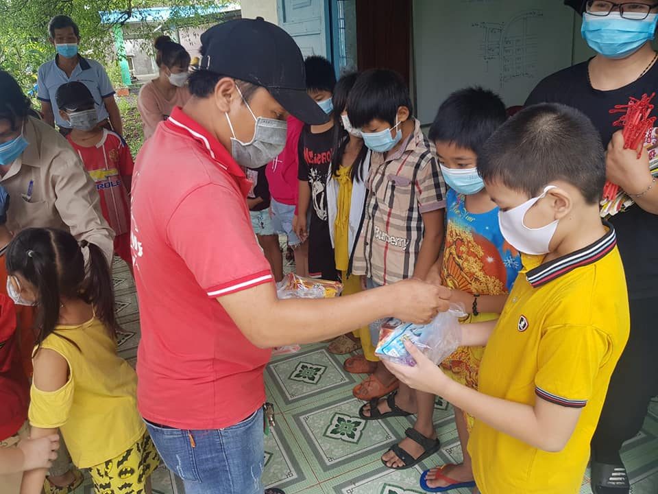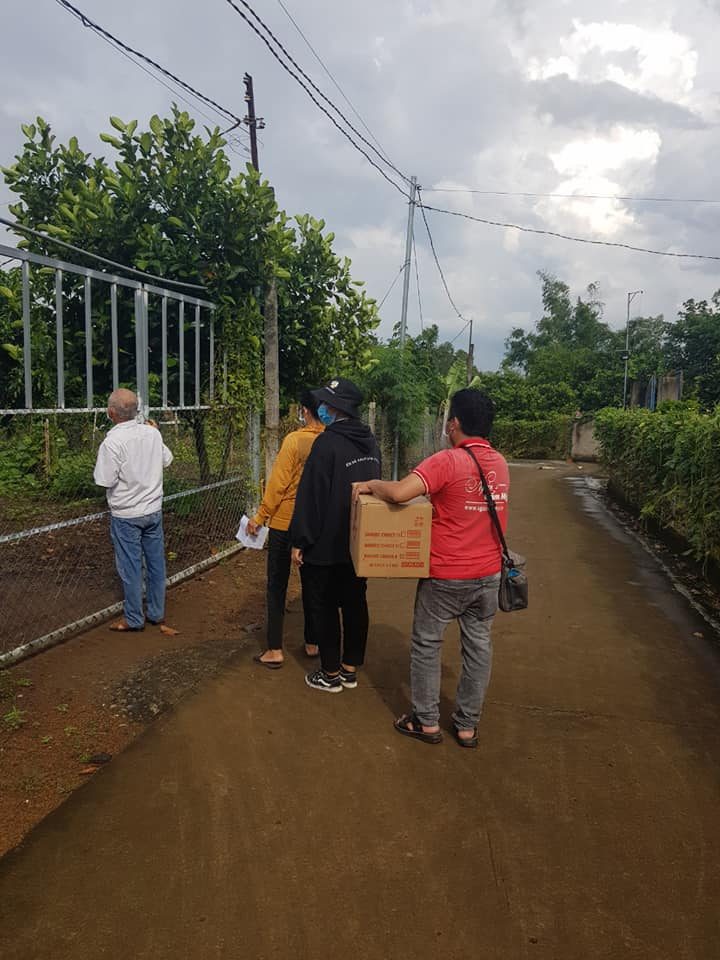 - Các tình nguyện viên đã không quản vất vả, phải di chuyển liên tục và gõ cửa từng nhà để trao quà đúng quy định phòng dịch.